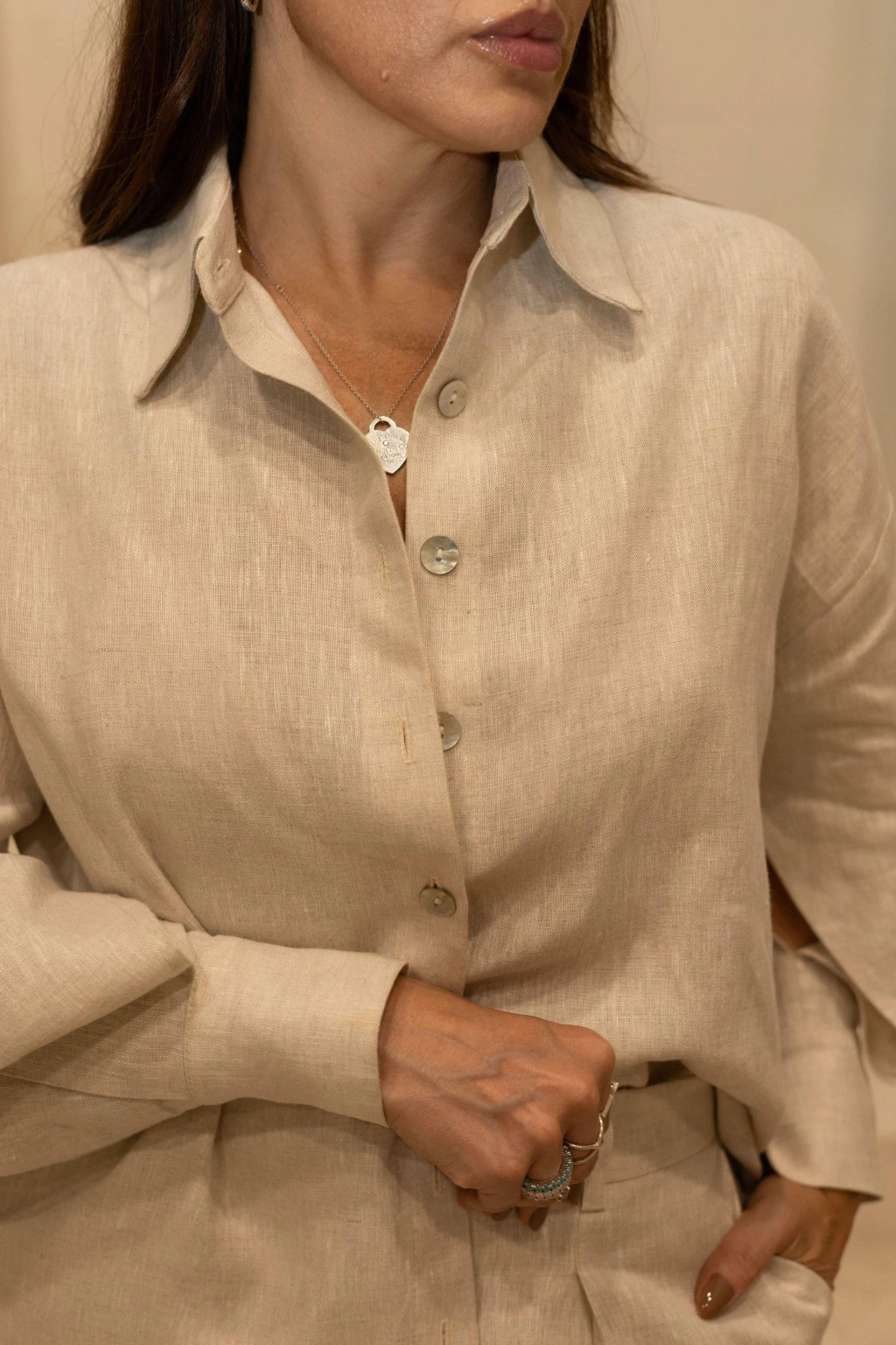Um clássico indispensável no guarda-roupa! Com caimento leve e sofisticado, ela transita facilmente entre produções casuais e elegantes. Versátil, pode ser usada tanto aberta sobre um biquíni ou top, quanto fechada para composições mais refinadas. Performa igualmente bem em composições com calça ou shorts. É um coringa!